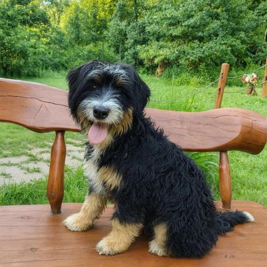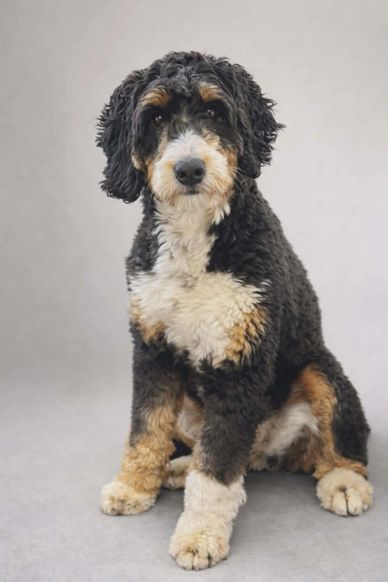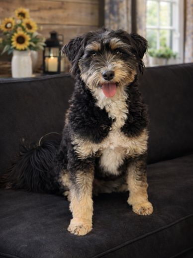 Every breed in Willow’s background brings something special to Hidden Valley Doodles. From the Bernese Mountain Dog, she’s inherited her gentle, kind nature and that soft, thoughtful way she approaches you—reading your heart before quietly settling at your side. From the Golden Retriever, she has the warm, eager-to-please spirit that makes you feel like her favorite person in the world. Her Poodle side shines through in her intelligence—this girl learns fast—and from the Australian Shepherd, you’ll see her playful spark and joyful bursts of energy.